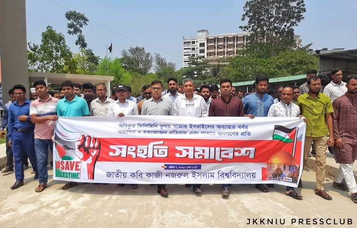 কবি নজরুল বিশ্ববিদ্যালয়ে গাজায় ইসরাইলি হামালার প্রতিবাদে বিক্ষোভ মিছিল-সমাবেশ