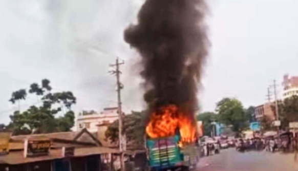 যশোরে সড়কে ঝরলো বাবাসহ দুই মেয়ের প্রাণ, বাসে জনতার আগুন