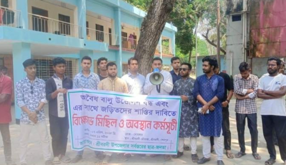 শ্রীবরদীতে অবৈধভাবে বালু উত্তোলন বন্ধ ও জড়িতদের শাস্তির দাবিতে বিক্ষোভ মিছিল-অবস্থান কর্মসূচি