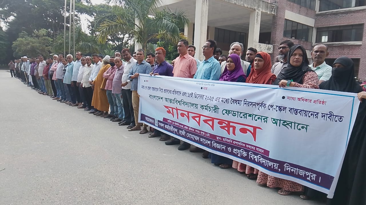 নবম পে-স্কেল বাস্তবায়নের দাবিতে দিনাজপুরে মানববন্ধন