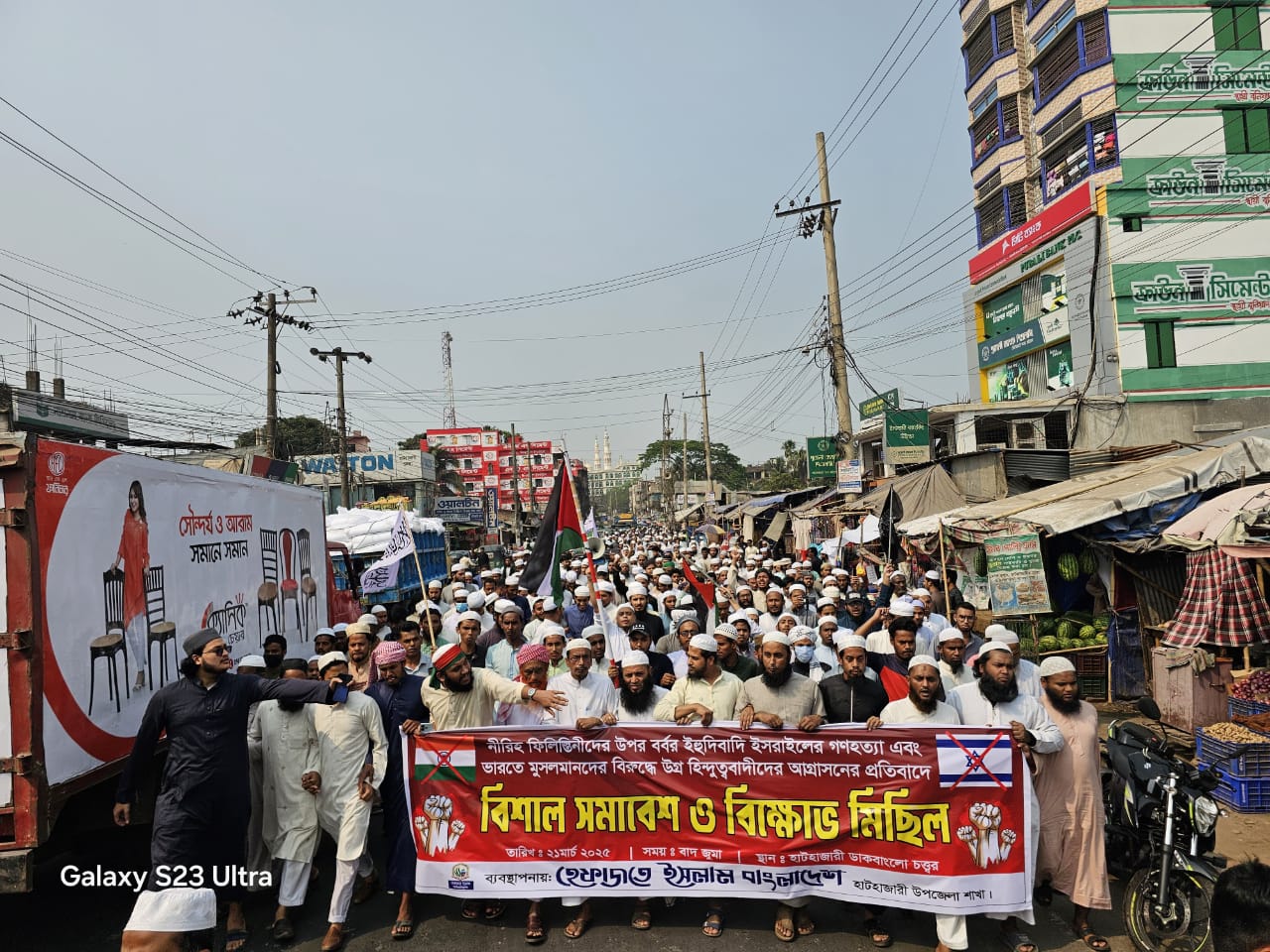 ফিলিস্তিনে ইজরাইলী গণহত্যার প্রতিবাদে হাটহাজারীতে হেফাজতের বিক্ষোভ