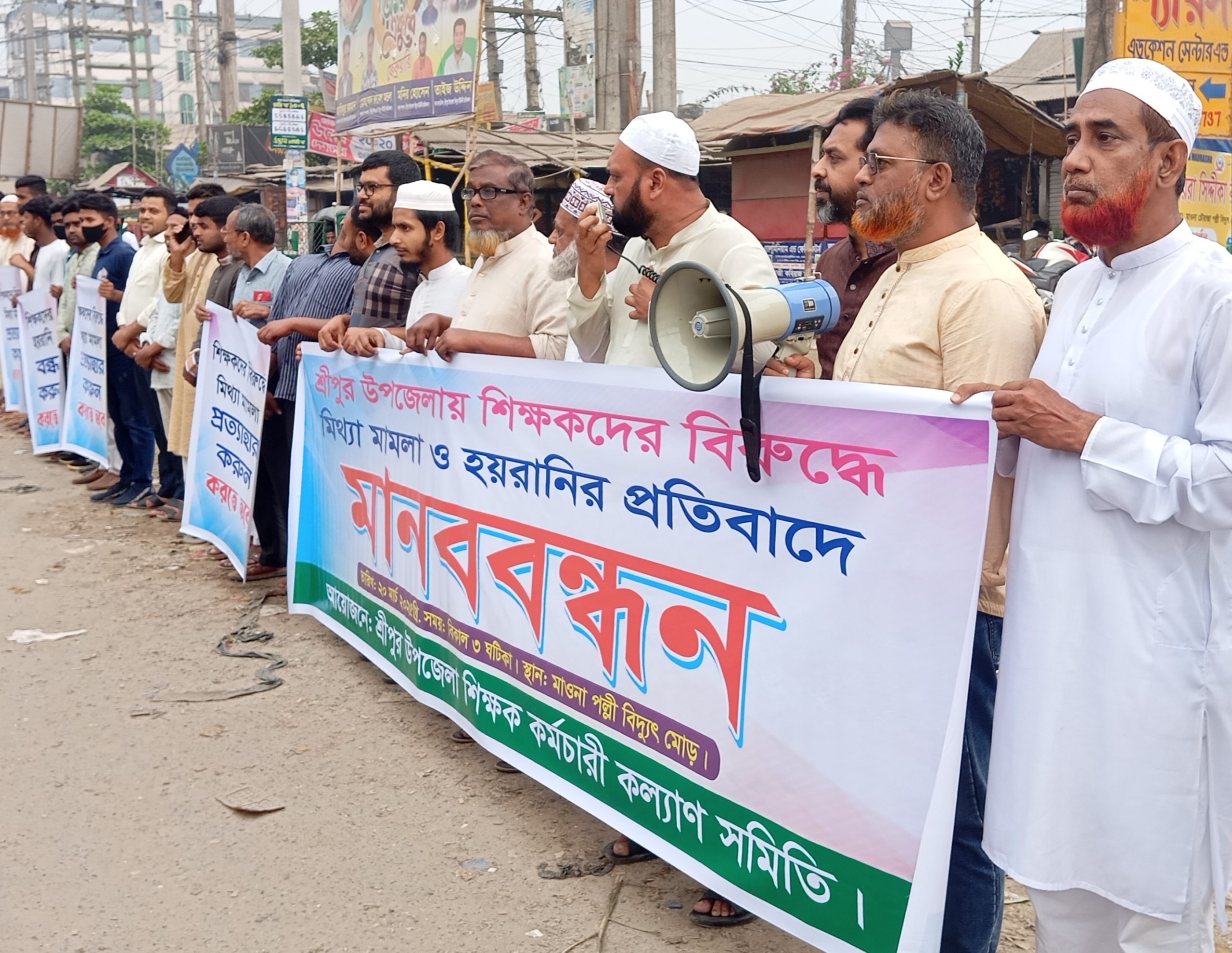 শ্রীপুরে শিক্ষকদের নামে মিথ্যা মামলার প্রতিবাদে মানববন্ধন