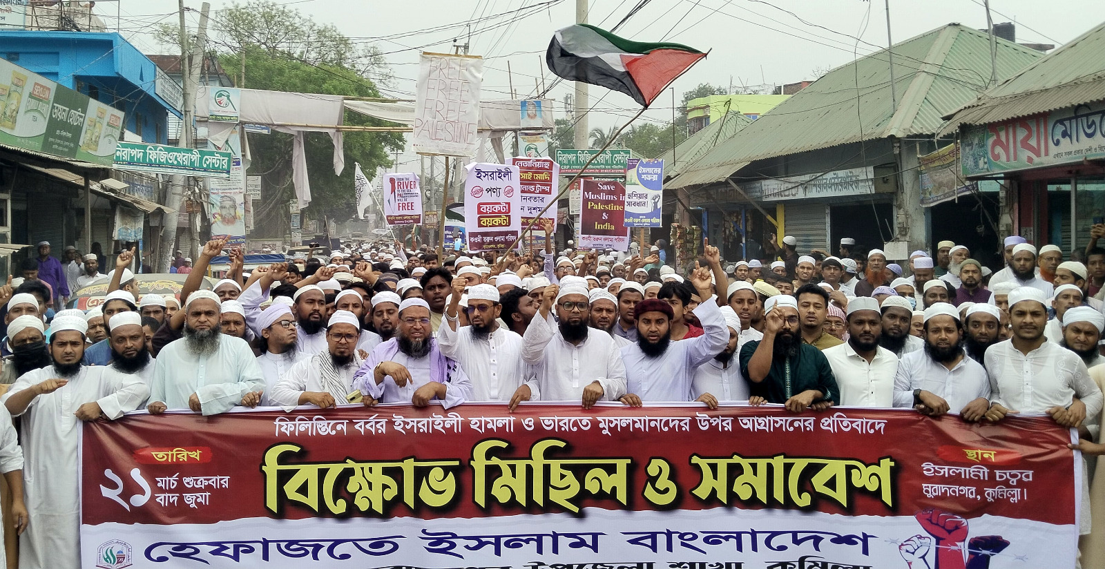 মুরাদনগরে ফিলিস্তিনে বর্বর হামলার প্রতিবাদে হেফাজতের বিক্ষোভ মিছিল