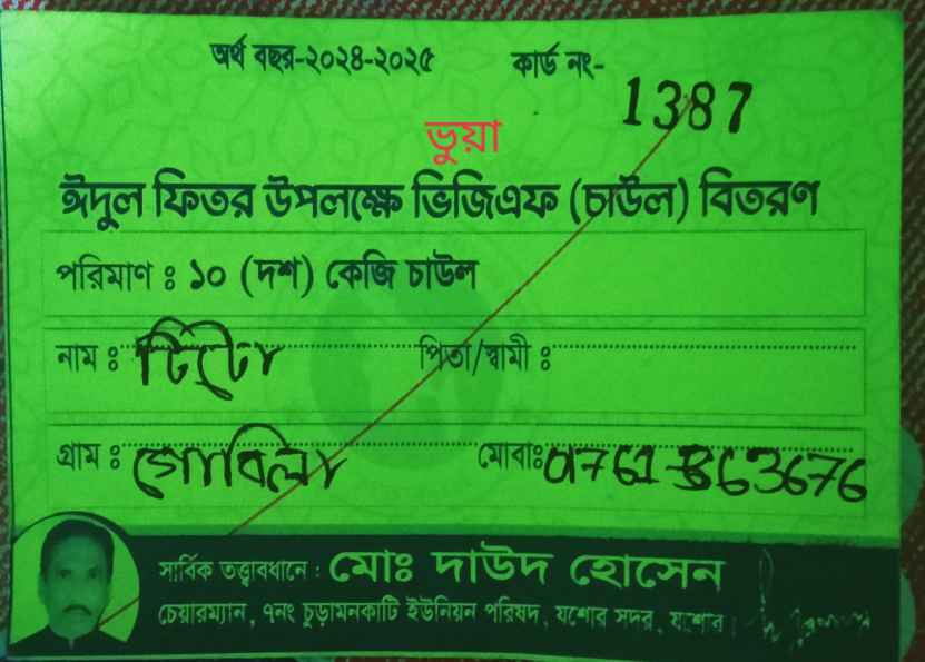 যশোরে বৈষম্য বিরোধী ছাত্র নেতার সীলে ভিজিএফ’র ভুয়া কার্ড!