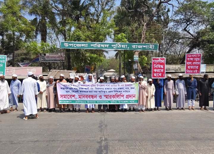 পুঠিয়ায় হেফাজতে ইসলামের মানববন্ধন