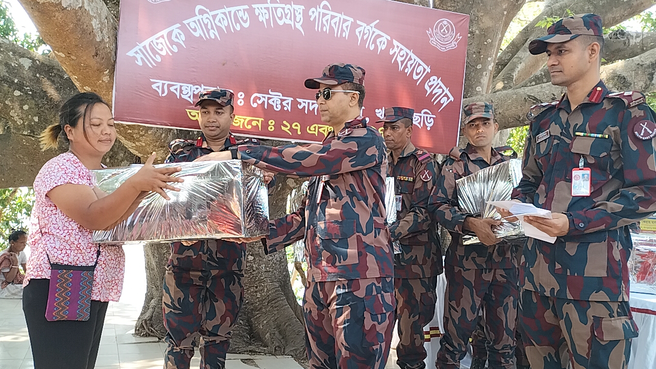 সাজেকে অগ্নিকান্ডে বিজিবি’র সহায়তা প্রদান