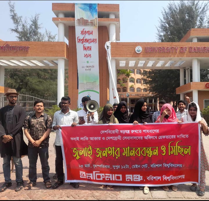 দেশবিরোধী ষড়যন্ত্রকারী ও লাকির গ্রেফতারের দাবিতে ববিতে মানববন্ধন