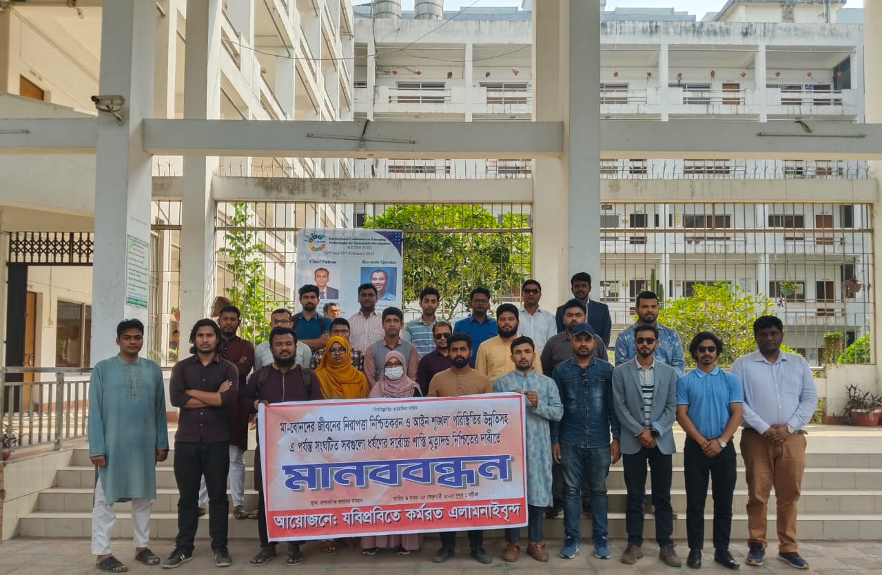 ধর্ষণের প্রতিবাদে যবিপ্রবির এলামনাইদের মানববন্ধন