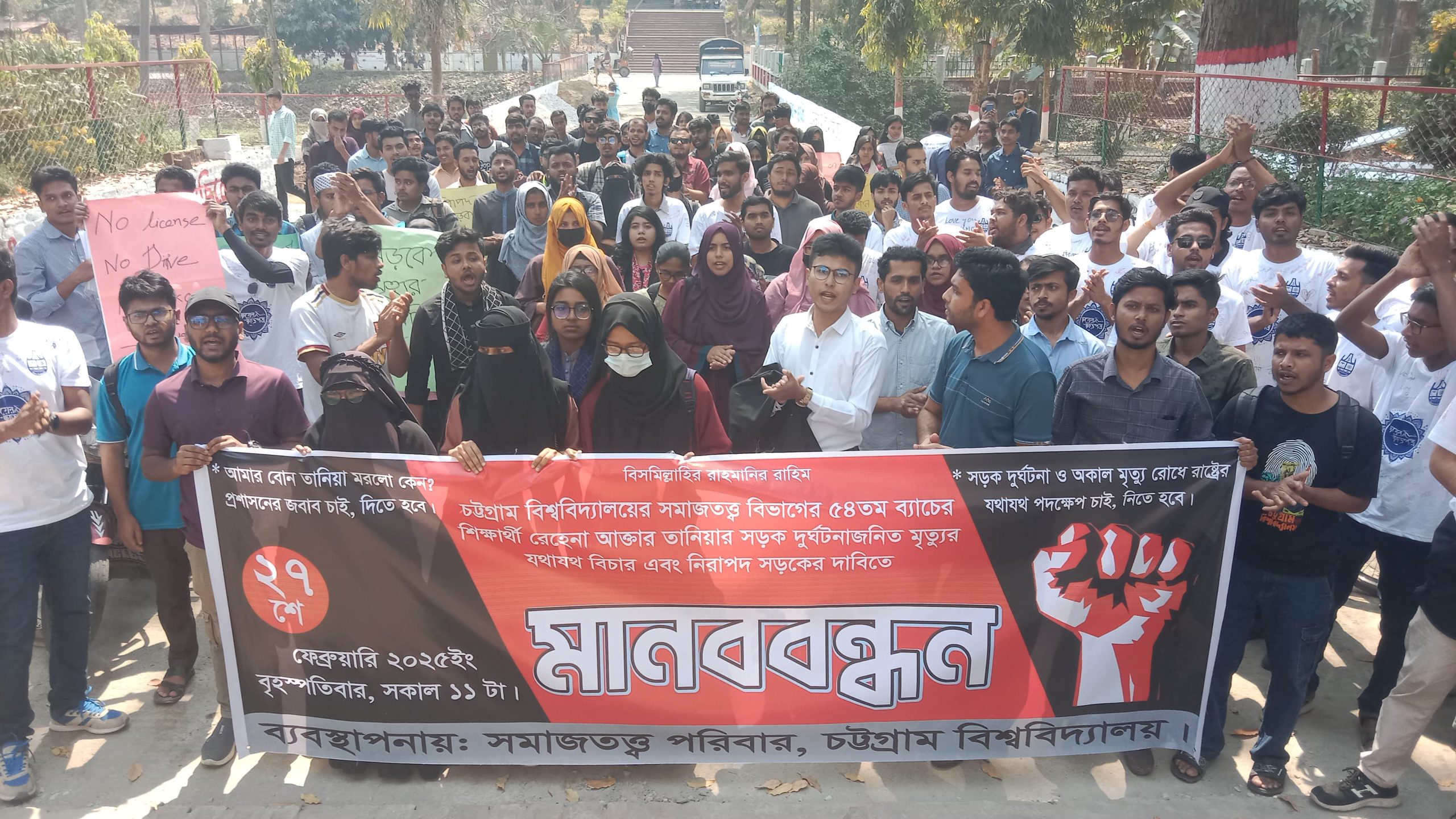 সড়ক দূর্ঘটনায় নিহত চবি শিক্ষার্থী, বিচারের দাবিতে মানববন্ধন