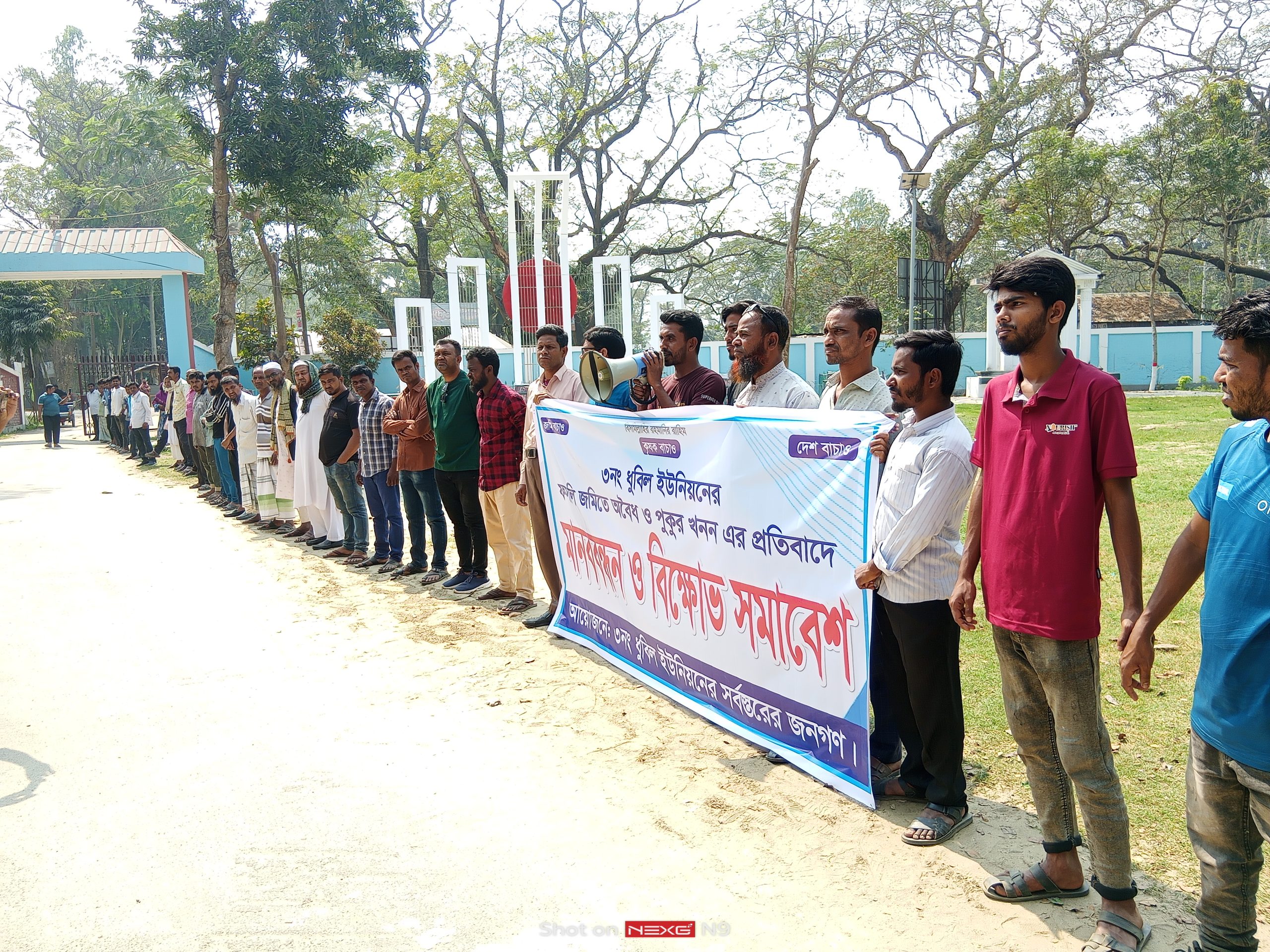 রায়গঞ্জে ধুবিল ইউনিয়নে অবৈধ পুকুর খননের প্রতিবাদে মানববন্ধন ও বিক্ষোভ