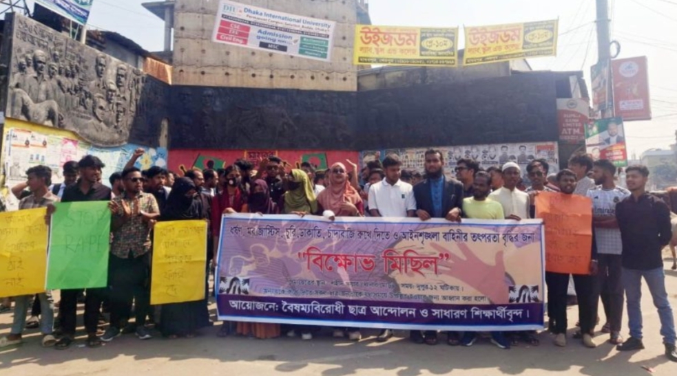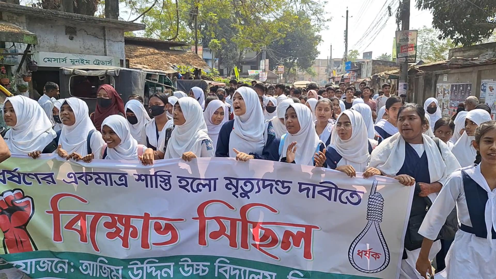 কিশোরগঞ্জে ধর্ষণের শাস্তি মৃত্যুদণ্ডের দাবিতে বিক্ষোভ মিছিল
