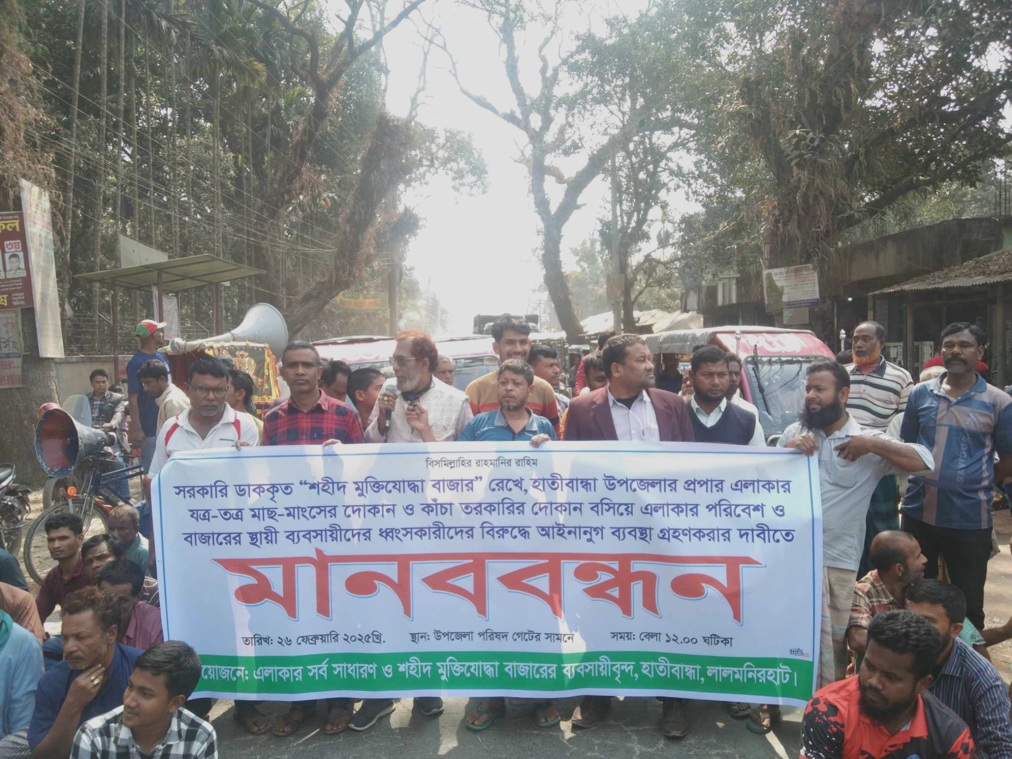 অবৈধ বাজার উচ্ছেদ করে ইজারা কৃত বাজার রক্ষার্থে ব্যবসায়িদের মানববন্ধন