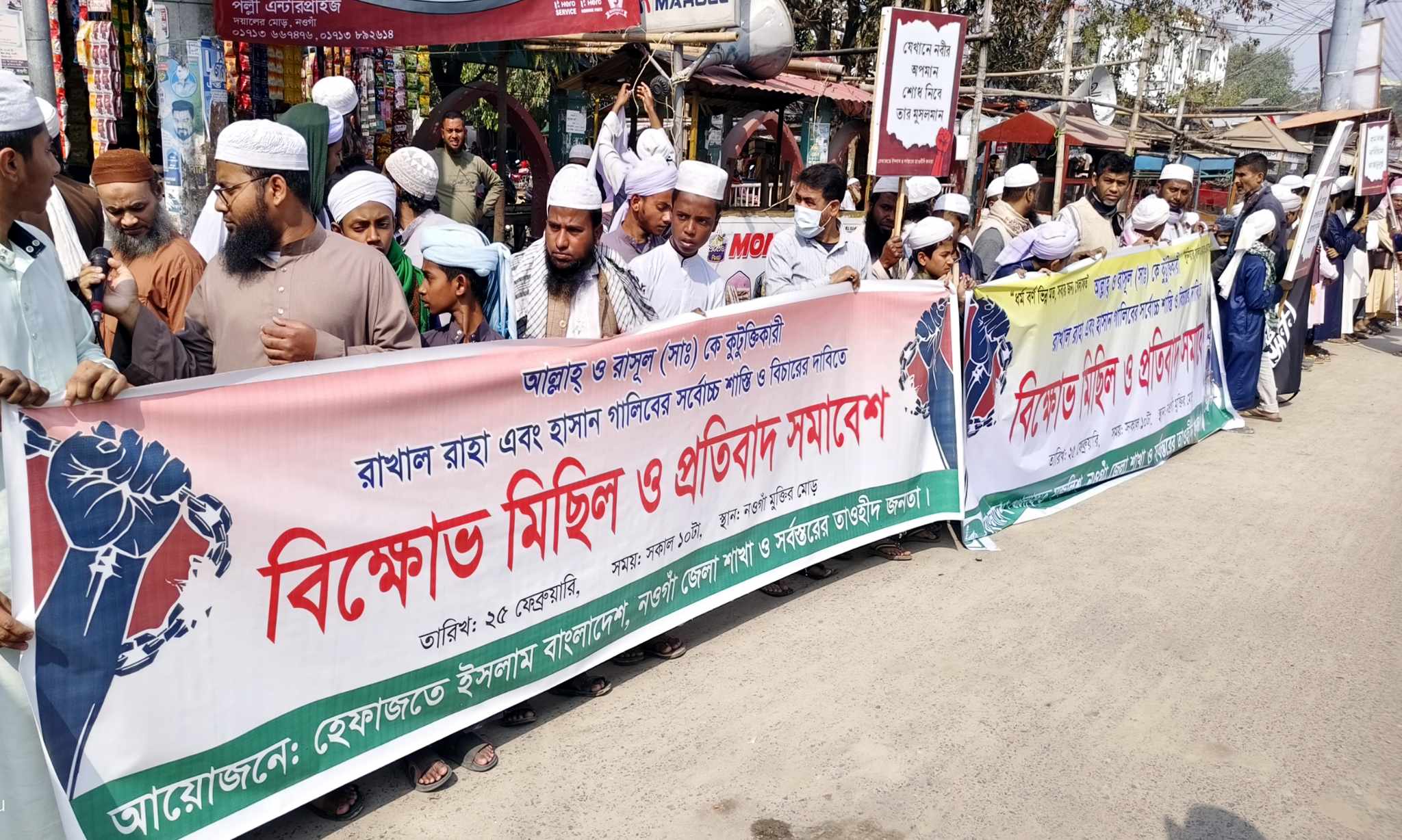 আল্লাহ ও রাসুল (সাঃ)কে কটুক্তিকারীদের বিচার দাবিতে নওগাঁয় বিক্ষোভ সমাবেশ
