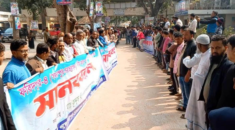 ফরিদপুর-৪ নির্বাচনী সংসদীয় আসন পুনর্বহালের দাবিতে দফায় দফায় মানব বন্ধন