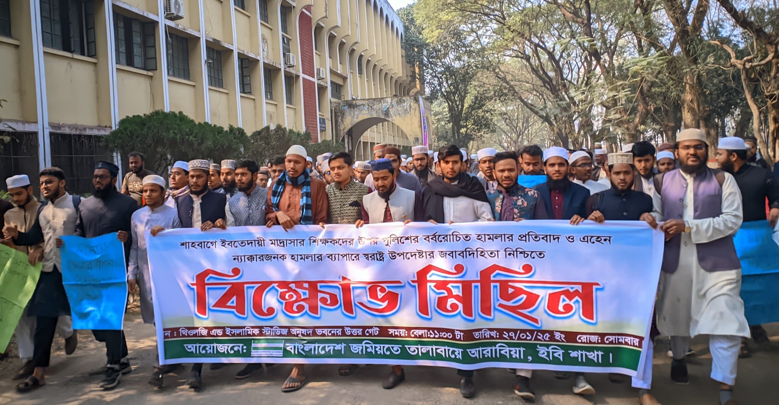 মাদ্রাসার শিক্ষকদের উপর পুলিশের হামলার প্রতিবাদে ইবিতে বিক্ষোভ
