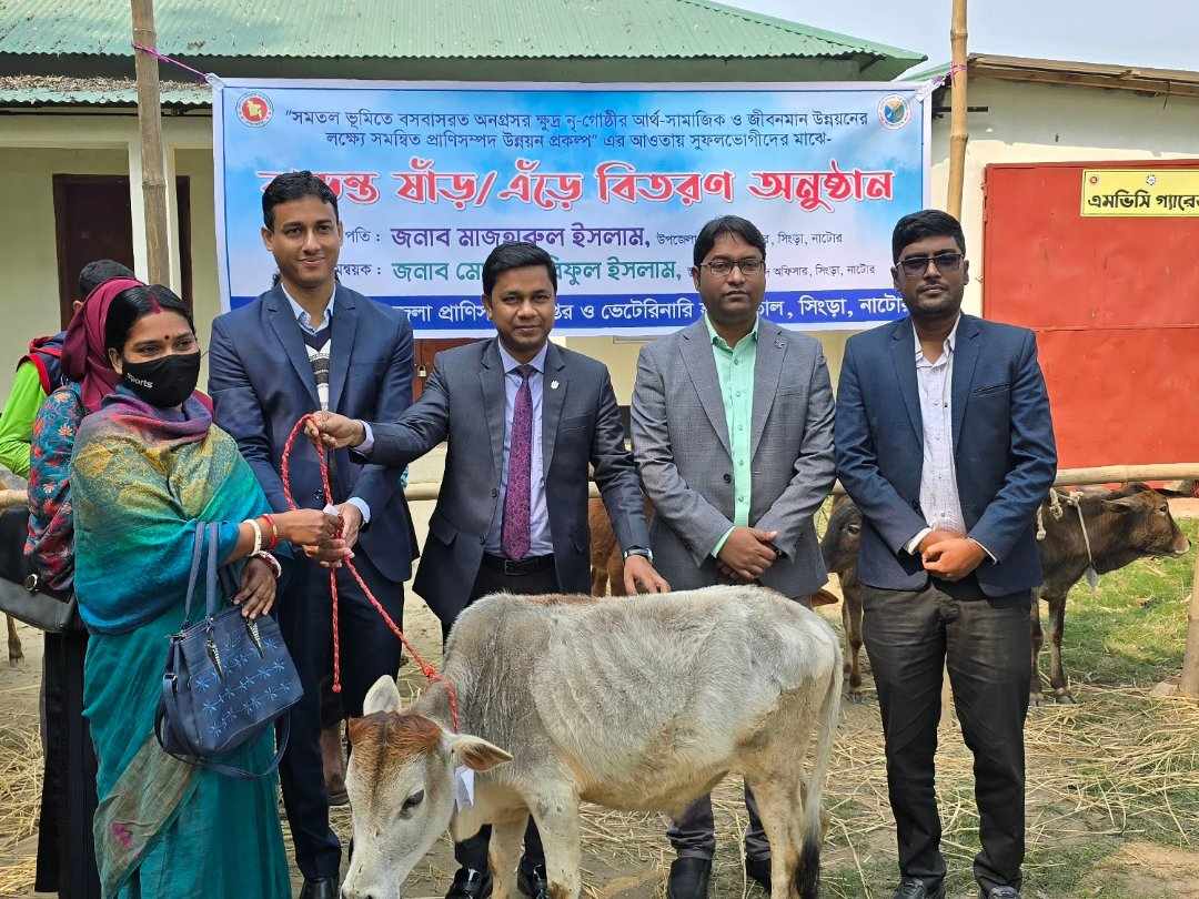 সিংড়ায় ক্ষুদ্র নিগ্রোষ্ঠীদের মাঝে গরু বিতরণ