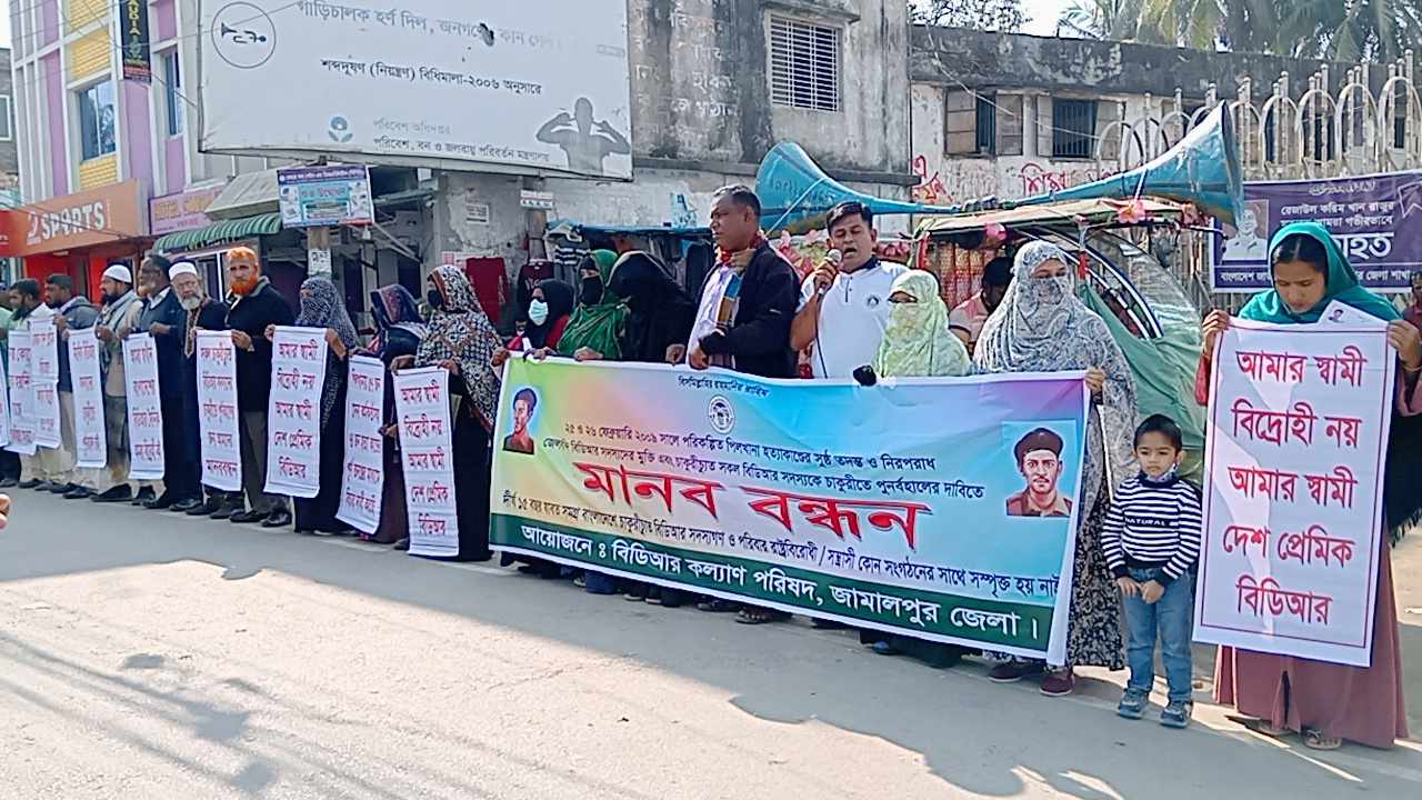 জামালপুরে ৩ দফা দাবীতে সাবেক বিডিআর সদস্যদের মানববন্ধন