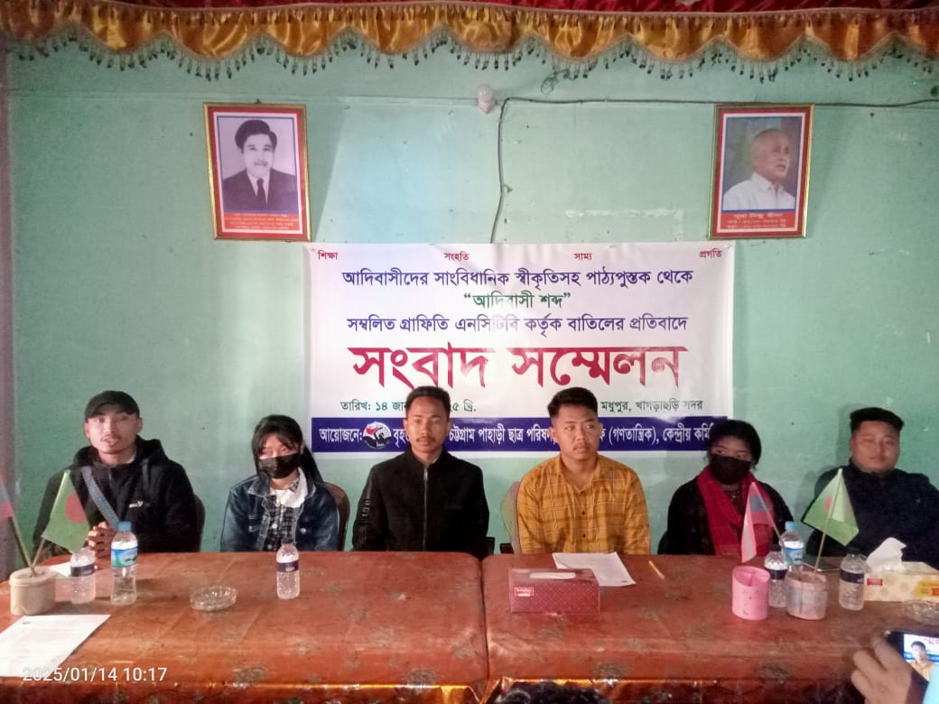 আদিবাসীদের সাংবিধানিক স্বীকৃতি ও পাঠ্যপুস্তক থেকে “আদিবাসী শব্দ” সম্বলিত গ্রাফিতি বাতিলের প্রতিবাদে সংবাদ সম্মেলন
