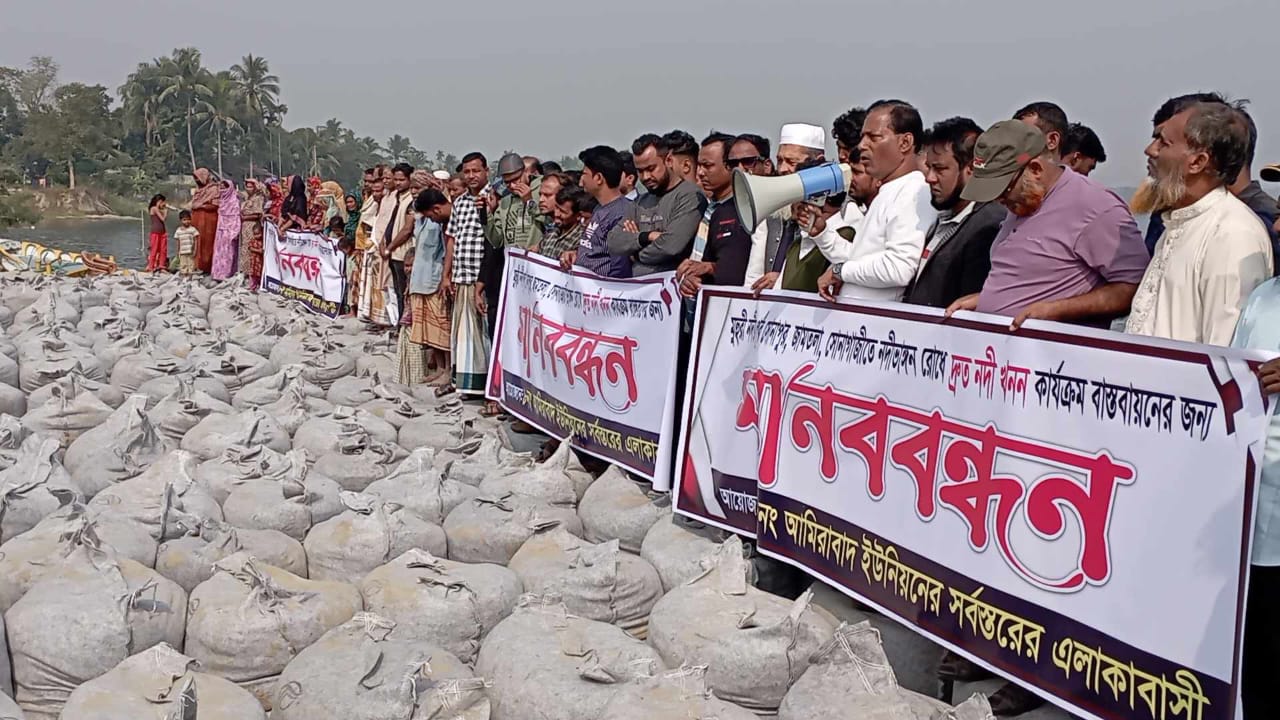 সোনাগাজীতে নদী খননের দাবিতে মানববন্ধন