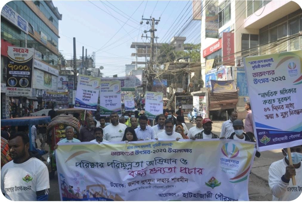 হাটহাজারীতে পরিস্কার পরিচ্ছন্নতা অভিযান ও বর্জ্য শূন্যতা প্রচারে র্যালি