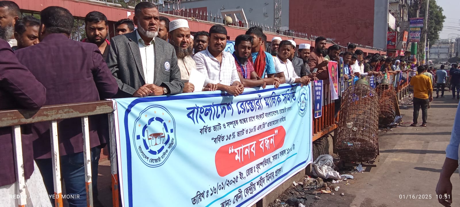 ফেনীতে বর্ধিত ভ্যাট প্রত্যাহারের দাবিতে মানববন্ধন