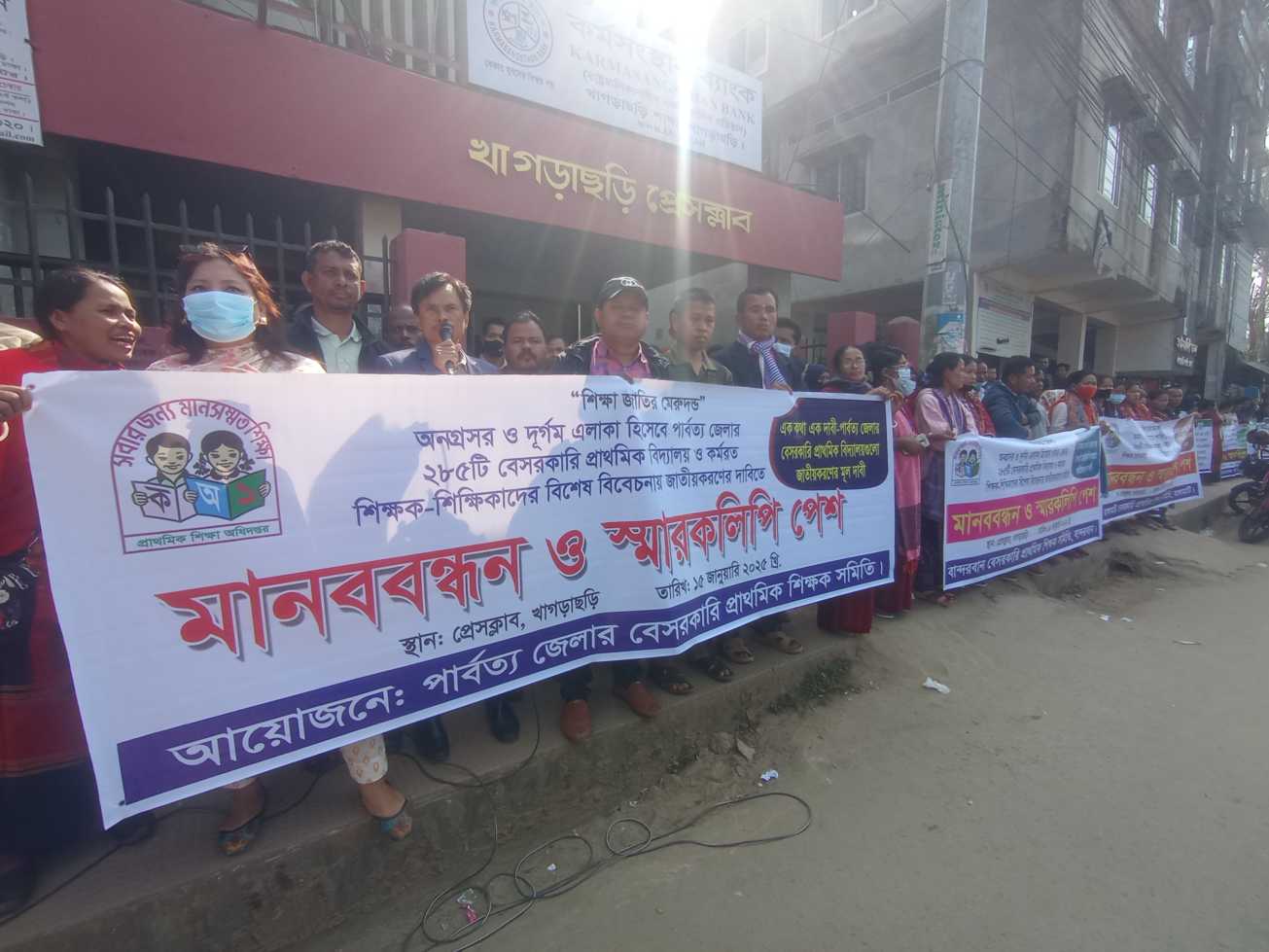 খাগড়াছড়িতে শিক্ষকদের মানববন্ধন দুর্গম এলাকার ২৮৫টি বেসরকারি প্রাথমিক বিদ্যালয় জাতীয়করণের দাবি