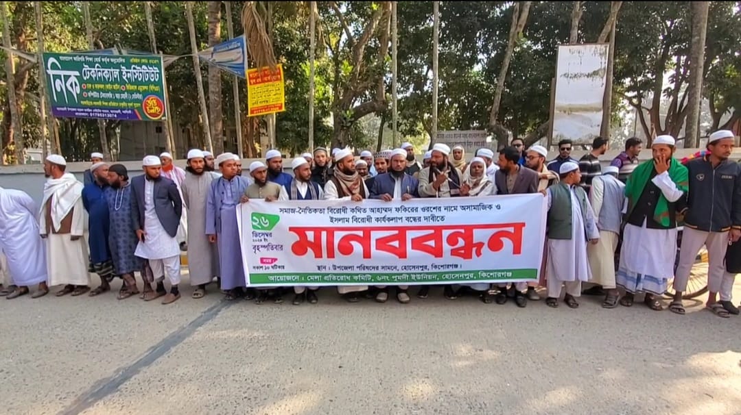 হোসেনপুরে ওরশের নামে অসামাজিক কার্যকলাপ বন্ধের দাবিতে মানববন্ধন