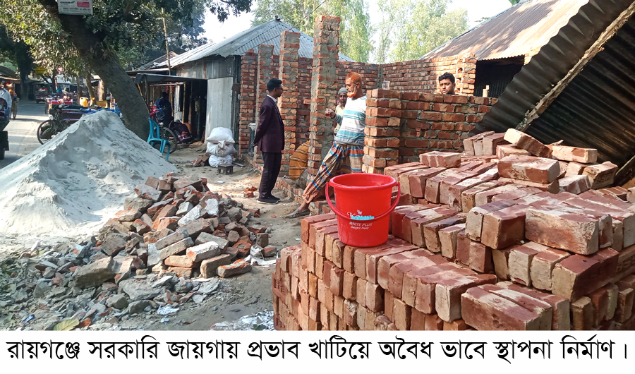 রায়গঞ্জে প্রভাবশালী কর্তৃক সরকারি জায়গায় পাকা স্থাপনা নির্মাণ