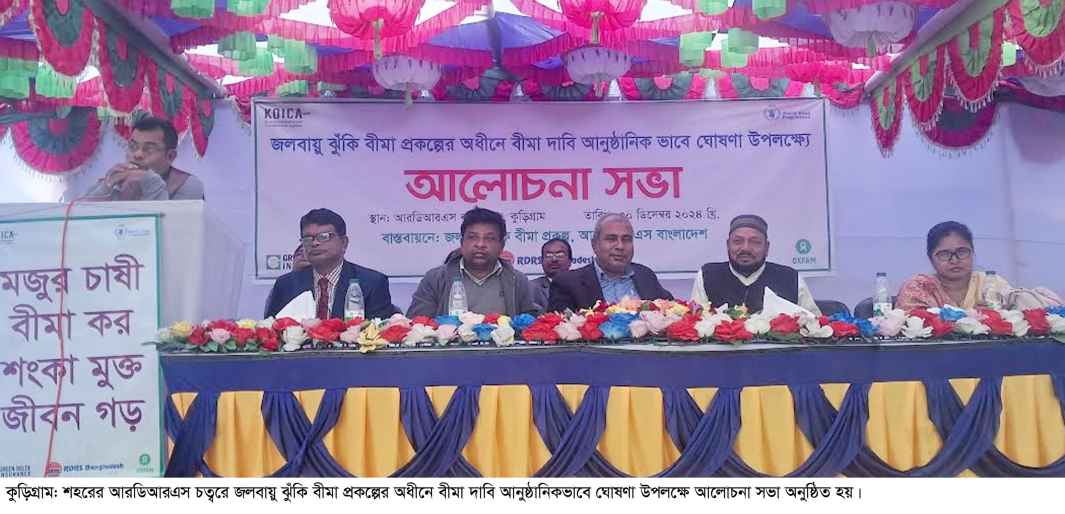 কুড়িগ্রামে জলবায়ু ঝুঁকি বীমা প্রকল্পের বীমা দাবি নিয়ে আলোচনাসভা অনুষ্ঠিত