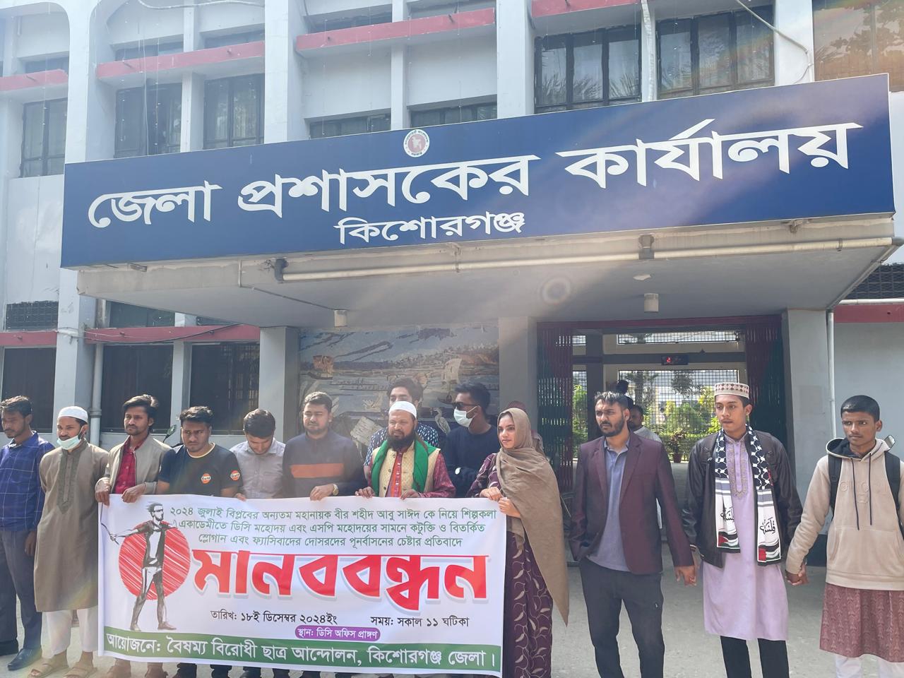 কিশোরগঞ্জে আবু সাঈদকে নিয়ে বিতর্কিত বক্তব্যের প্রতিবাদে মানববন্ধন
