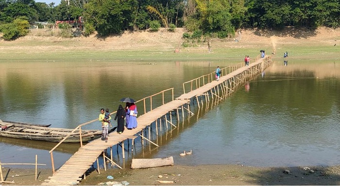 সুরমায় খেয়ার বদলে কাঠের সেতু