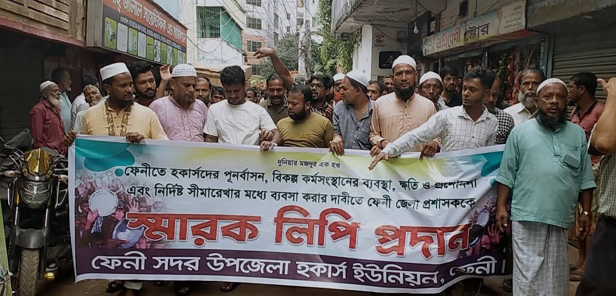 ফেনীতে হকার্স দের পুনর্বাসনের দাবিতে জেলা প্রশাসকে স্মারকলিপি প্রদান