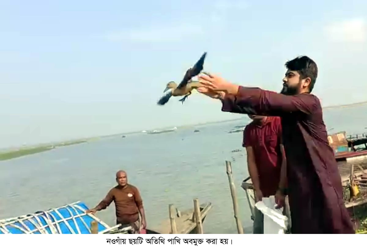 নওগাঁর পোরশায় মুক্ত আকাশে ডানা মেললো ছয়টি বালি হাঁস
