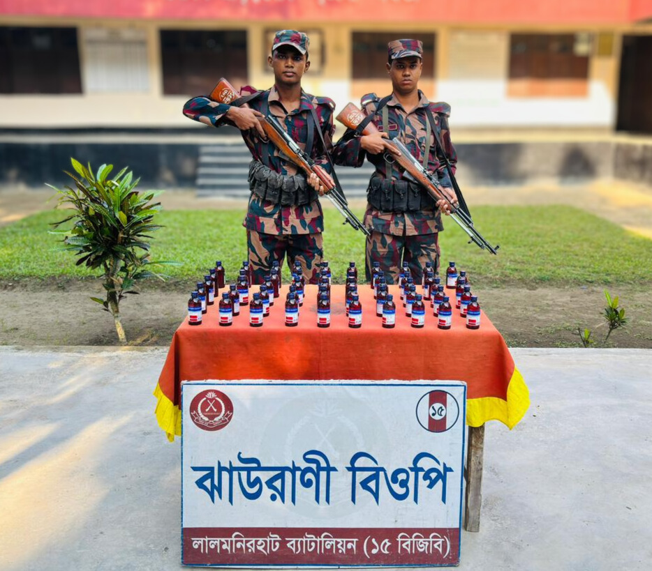 লালমনিরহাটে বিজিবির অভিযানে ৫০ বোতল ভারতীয় ইস্কাফ সিরাপ জব্দ