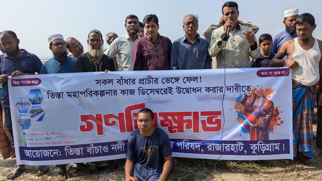 তিস্তা মহাপরিকল্পনা দ্রুত বাস্তবায়নের দাবিতে রাজারহাটে গণবিক্ষোভ