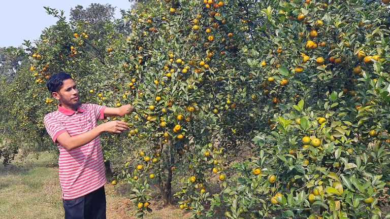টাঙ্গাইলে চায়না কমলা চাষে কৃষকের ভাগ্য বদল,বছরে আয় চার লাখ
