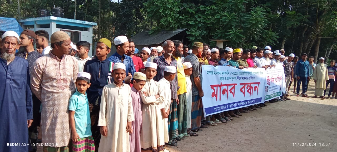 ফেনীতে ছাত্রহত্যা চেষ্টার মামলায় হেফাজত নেতা, জামায়াত -বিএনপির কর্মী, ও প্রবাসিদের আসামি করার প্রতিবাদে মানববন্ধন