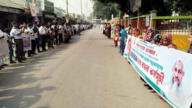 রাজারহাটে ইসকন নিষিদ্ধের দাবিতে দ্বিতীয় দিনে বিক্ষোভ