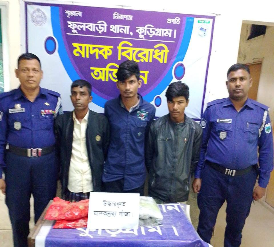 কুড়িগ্রামের ফুলবাড়ীতে দেড় কেজি গাঁজাসহ ৩ জন গ্রেফতার