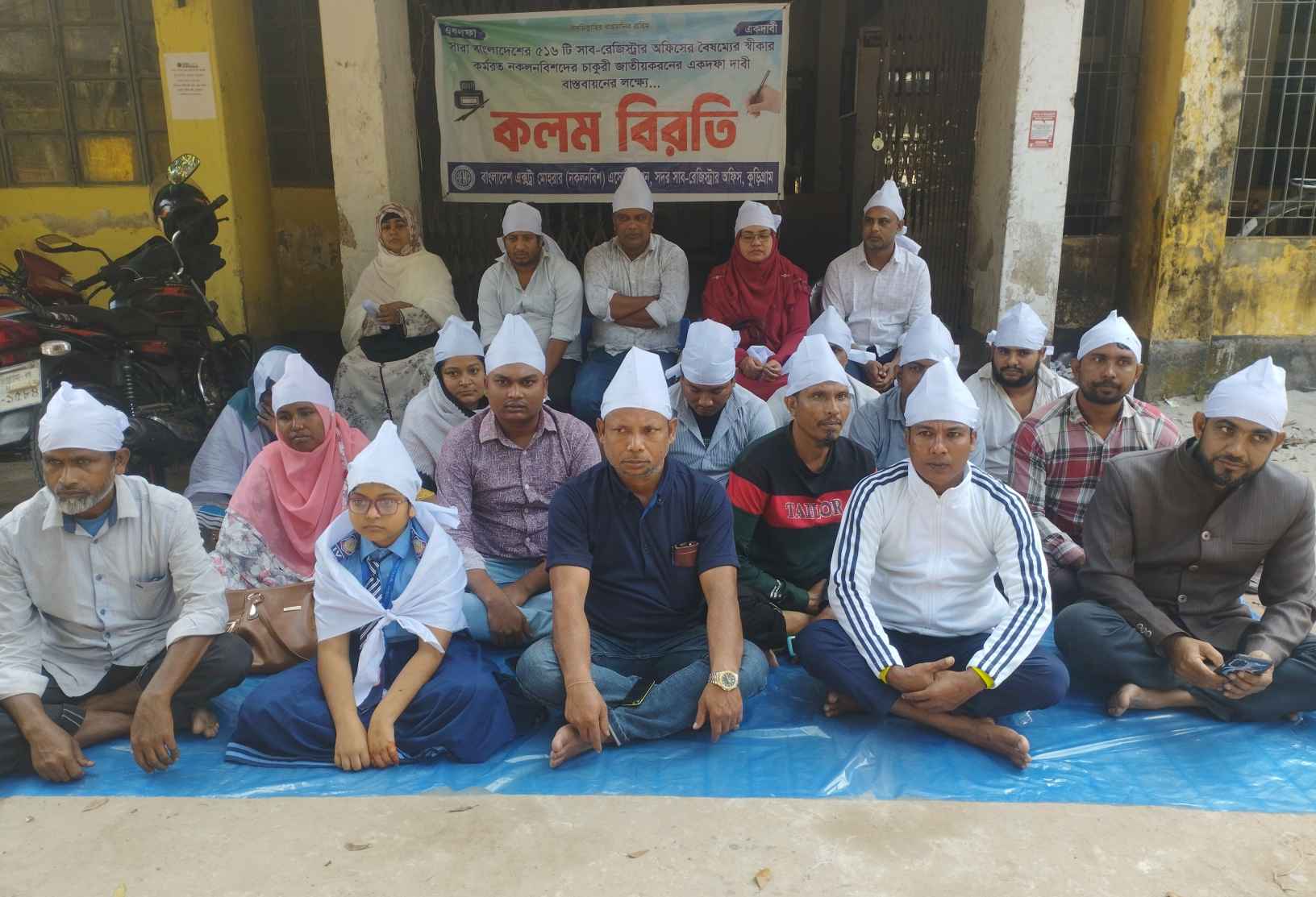 সাব-রেজিস্ট্রি অফিসে কর্মরত নকল নবিশদের চাকরি জাতীয়করণের দাবিতে কুড়িগ্রামে কলম বিরতি ও অবস্থান কর্মসূচি