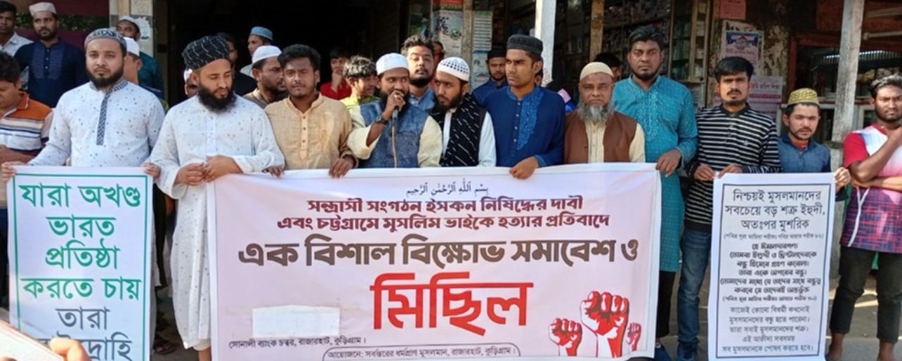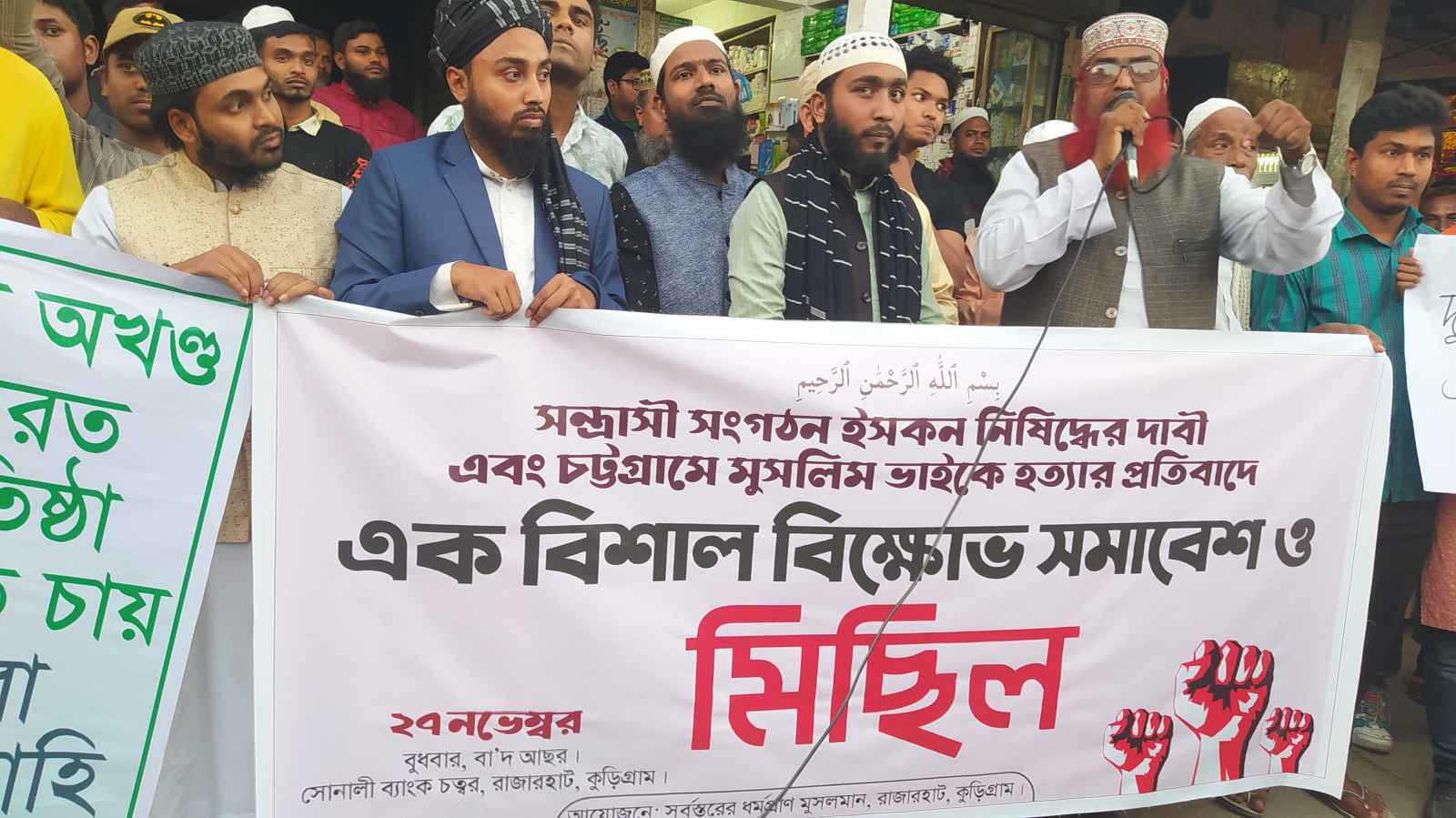রাজারহাটে সনাতনী সংগঠন ইসকনের বিরুদ্ধে বিক্ষোভ সমাবেশ