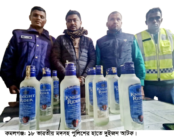 কমলগঞ্জে ভারতীয় ১৮ বোতল মদসহ আটক ২