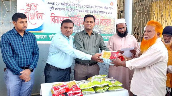 কটিয়াদীতে ক্ষুদ্র ও প্রান্তিক কৃষকদের মাঝে হাইব্রিড ধানের বীজ বিতরণ