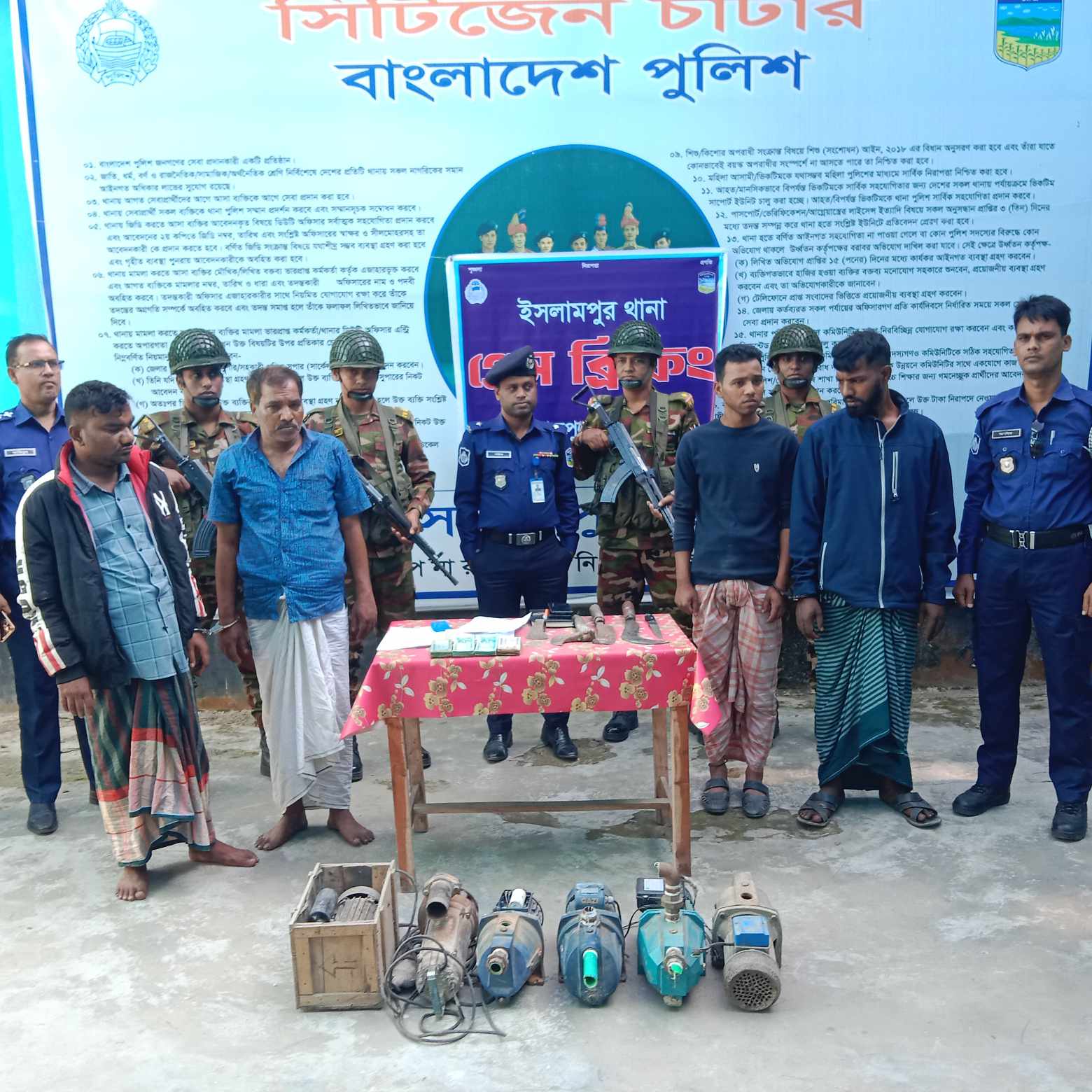 জামালপুরে যৌথ বাহিনীর অভিযানে অস্ত্র ও মাদকসহ আটক ৫