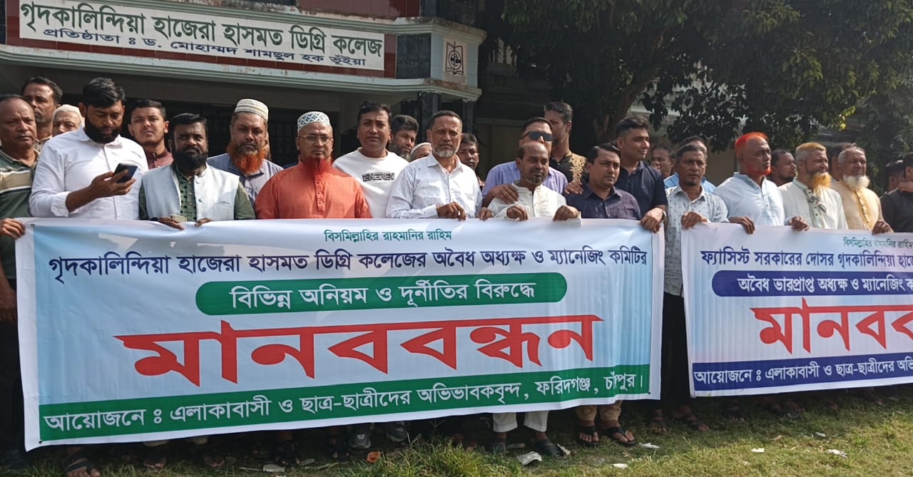 ফরিদগঞ্জে গৃদকালিন্দিয়া কলেজের অবৈধ কমিটি বাতিলের দাবিতে মানববন্ধন