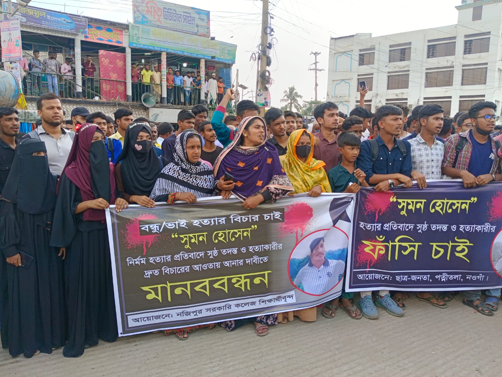 নওগাঁর পত্নীতলায় সুমন হত্যা খুনিদের ফাঁসির দাবিতে বিক্ষোভ