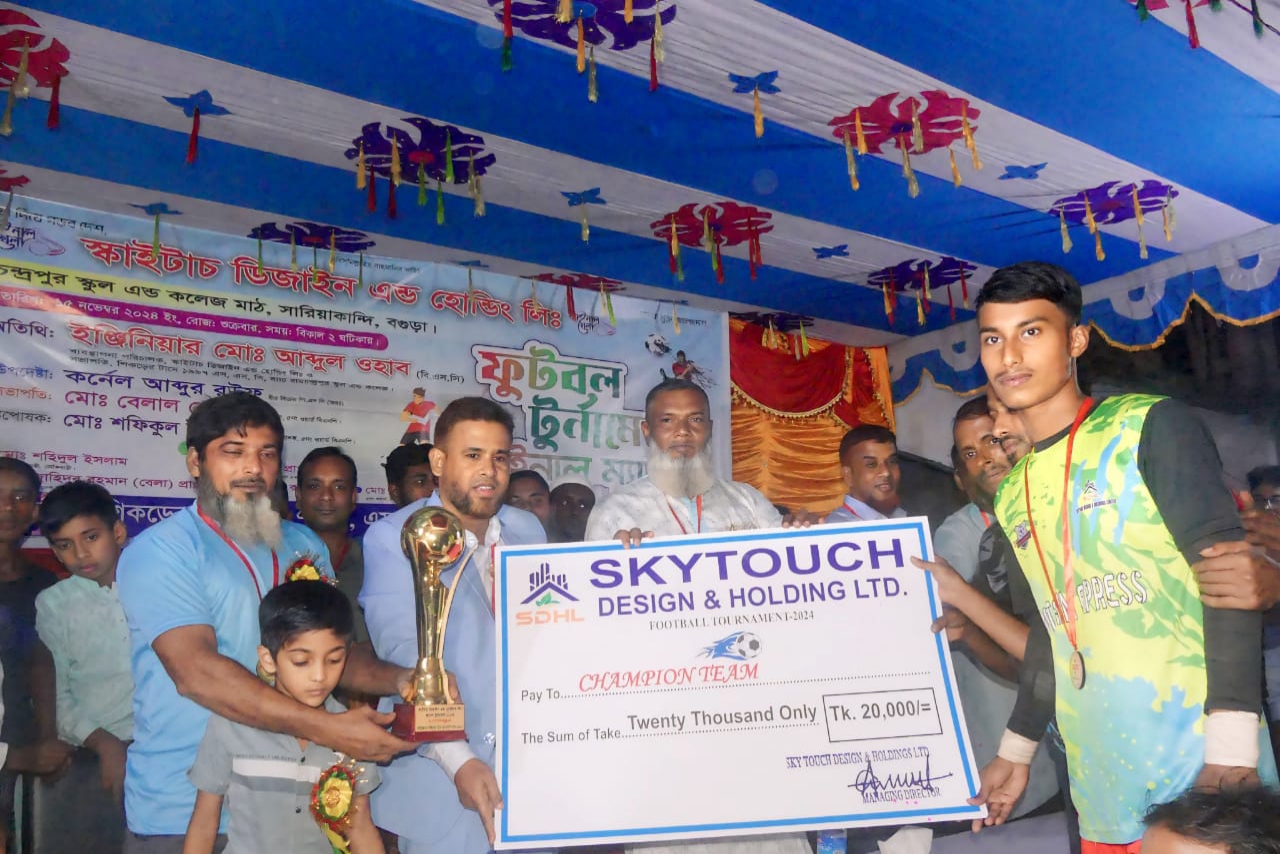 সারিয়াকান্দীতে স্কাইটাচ্ ডিজাইন এন্ড হোল্ডিংস লিমিটেড ফুটবল টুর্ণামেন্ট’র ফাইনাল ম্যাচ অনুষ্ঠিত