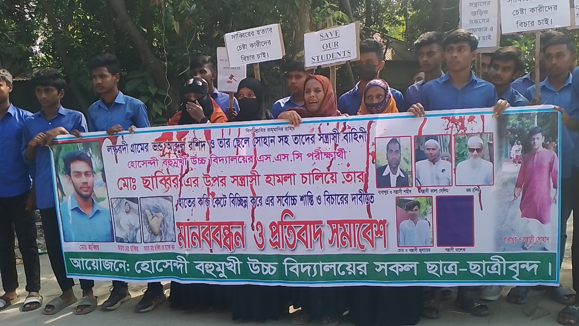 মুন্সিগঞ্জের গজারিয়ায় এসএসসি পরীক্ষার্থীর কব্জি কাটার ঘটনায় মানববন্ধন