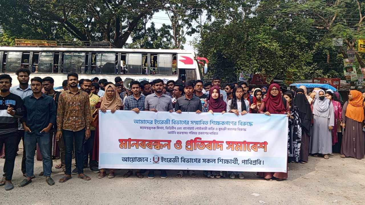 পাবিপ্রবিতে ইংরেজি বিভাগের শিক্ষককে নিয়ে অবমাননাকর পোস্ট; শিক্ষার্থীদের মানববন্ধন