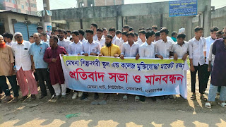 সোনারগাঁয়ে স্কুলের জমি দখলের প্রতিবাদে মানববন্ধন